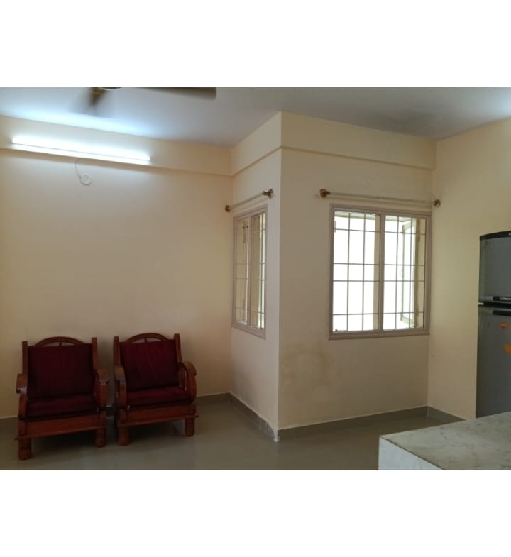 This has Double door Fridge, LG AC, 2 King Size Cots with Mattress, 2 Wooden Chairs, Airtel tv DTH connection and JIO WI-FI, Lights, Fans, Geyser, Wardrobe, 2 Western washrooms with Geyser, Shower, Hand wash sink, Balcony, Utility area with Grill etc.